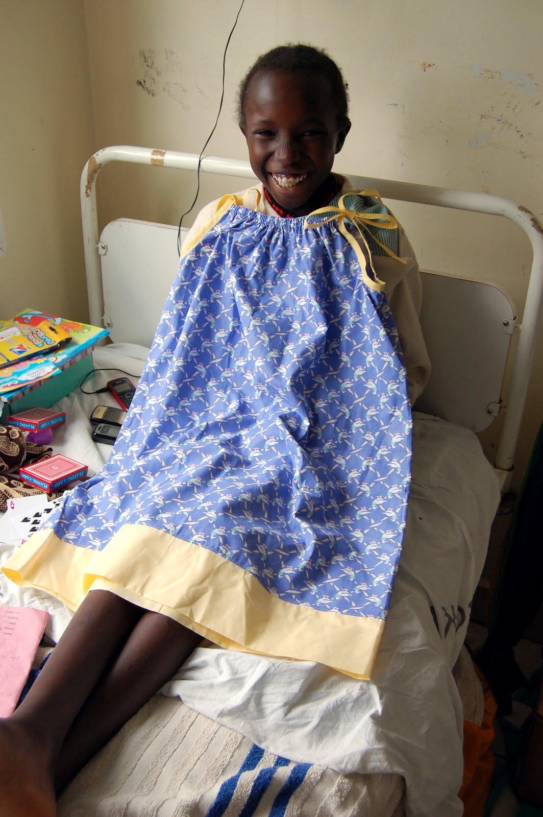 Debra the morning after her surgery! I was able to visit her before she left and gave her a pillow made by a student volunteer in California:)